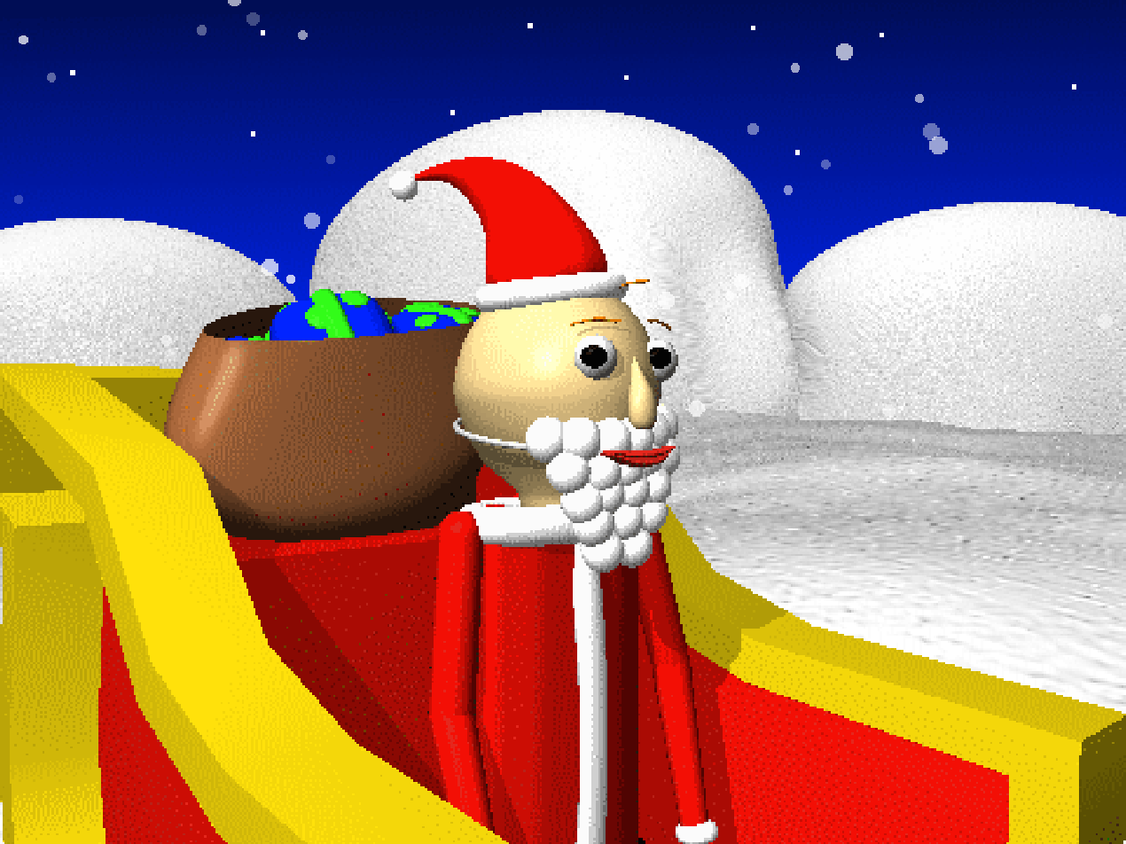 It's Christmas! Baldi decieded to dress up as Santa Claus to deliver presents and coal with his new invention, the Super Sleigh! You play as Baldi and your goal is to deliver presents to the nice ones and coal to the naughty ones. There's an indicator on the bottom-right corner which shows up the character so that you can choose if the following character deserves a present or pieces of coal, Baldi even wrote his own nice and naughty lists: